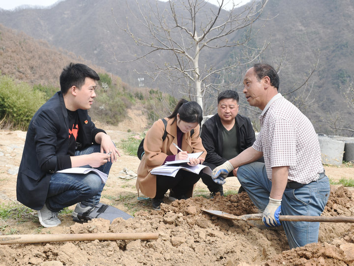 区纪委派驻二郎村第一书记郭景峰在田间地头与贫困户商议产业发展规划