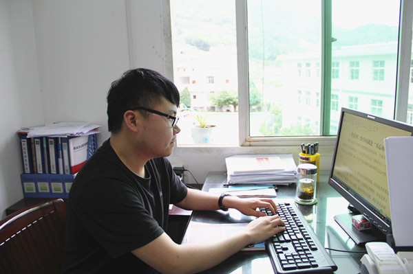 图一:县纪委副书记、县监委副主任祝敏凯利用工作间隙学习《梁家河》