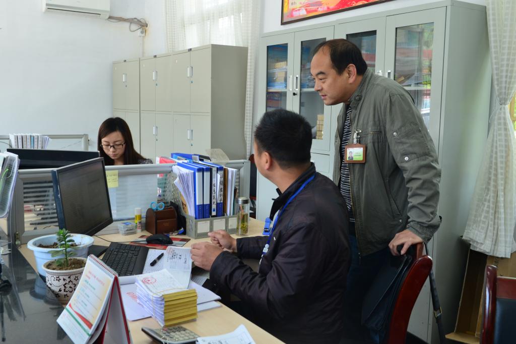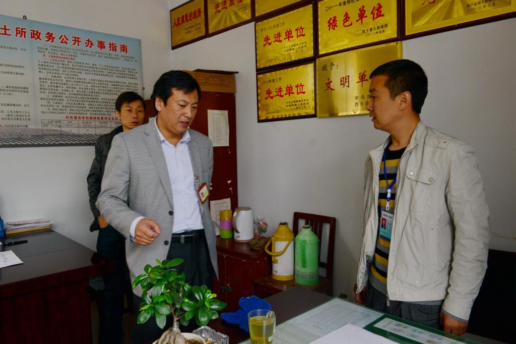 9:50,经研究,县委深化作风办人员决定兵分两路检查干部作风情况。图为一路人员来到镇国土资源所检查干部作风情况