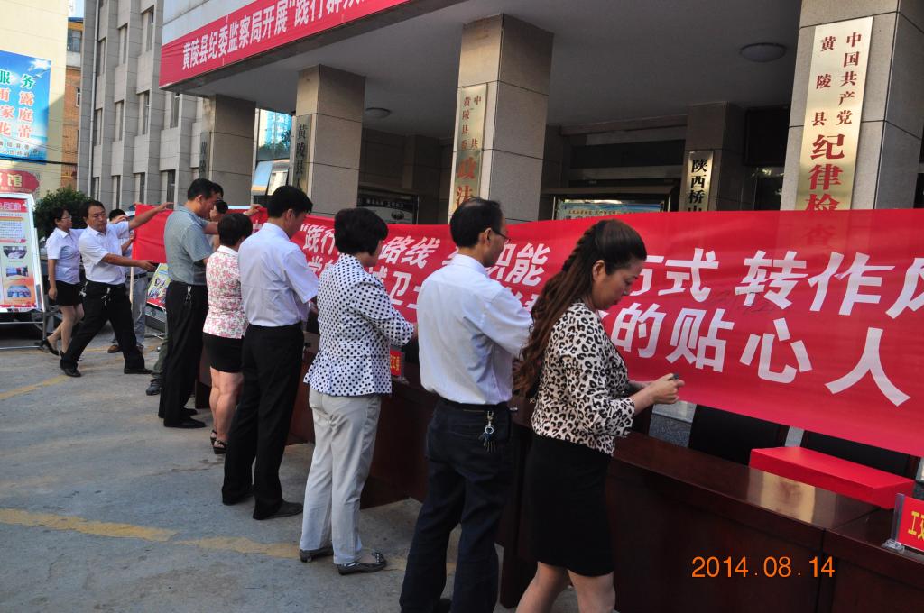 为深化群众路线教育实践活动、落实“三转”要求、推动纪检监察信访举报“民情直通车”制度落实,8月14日,陕西省黄陵县纪委、监察局开展“践行群众路线,转职能、转方式、转作风意见征询活动”。