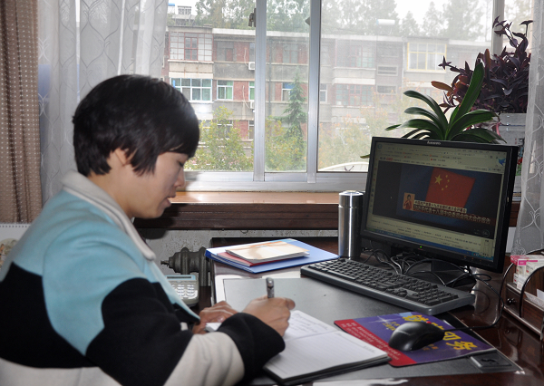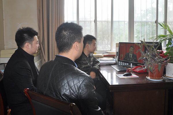 市人民防空办公室工作人员在电脑上观看直播。 (渭纪宣)
