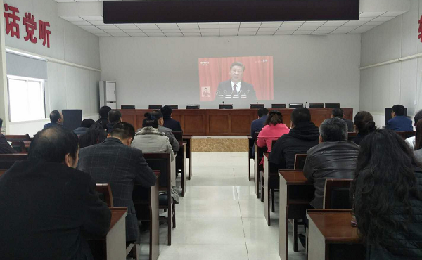 经开区辛市街道办组织党员干部观看十九大开幕式。(李小鸽摄)