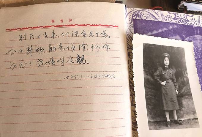 张天华的日记本记录了爱人胡以钢被国民党抓捕之后,他重返离别之地宣化店时的深痛感触:“别后又重来,印深莫过于您。今日到此,触景伤情。何时得见?定痛吻长亲。1948.7.26日于宣化店。”(照片为胡以钢)
