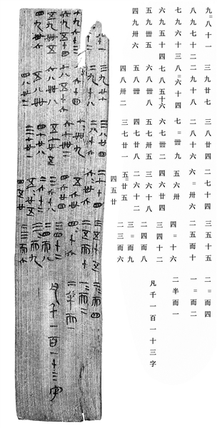 里耶秦简中的九九乘法表,这是我国发现的最早最完整的九九乘法表实物。(资料图片)