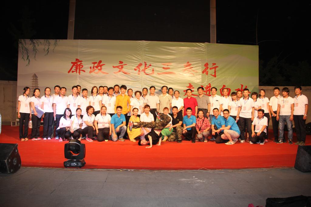 为了进一步扩大廉政文化的覆盖面和影响力,促进党的群众路线教育活动深入开展,2014年6月18日下午7点,由省纪委、省监察厅、省文化厅联合举办的“廉政文化三秦行”文艺演出在我县仓颉广场举行。县委常委、纪委书记郭世英致辞,白水县四大班子及其它在家县级领导、各单位部分党员干部和广大群众2000余人观看了演出。