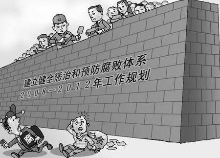 《建立健全惩治和预防腐败体系2008-2012年工作规划》将《建立健全教育、制度、监督并重的惩治和预防腐败体系实施纲要》确定的工作目标进行了调整,将教育、制度、监督、惩处四项工作部署拓展为教育、制度、监督、改革、纠风、惩处六项工作部署,形成了对惩防腐败体系建设的总体布局――