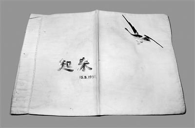 郭纲琳烈士在狱中刺绣的枕套,上面绣有大雁、“起来”字样。