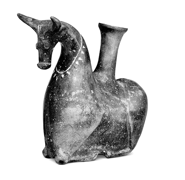 公牛形陶来通。这件文物正在湖南省博物馆“我们亚洲——亚细亚古代文明展”中展出。来通是起源于西方的一种酒具,公元前1500年的希腊克里特遗址中就发现了这种器物,后来传至西亚、中亚,西安何家村唐代窖藏中也发现了一件来通。(资料图片)