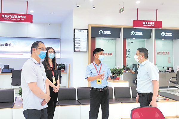 江苏省宜兴市纪委监委紧盯金融领域腐败,持续开展精准监督,深挖细查靠行吃行、设租寻租、关联交易、内外勾结等问题线索,以强监督促强监管。图为近日,该市纪委监委第九派驻纪检监察组工作人员在当地某银行了解相关情况。邹宜宾 摄