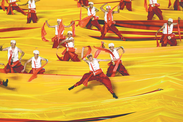 开幕式现场表演突出人文底蕴,从传统文化、民间艺术中汲取养分,充分彰显陕西人文特色,精彩纷呈。 (图片来源:视觉中国)