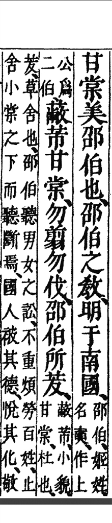 《召南·甘棠》记载,“蔽芾甘棠,勿翦勿伐,召伯所茇”,西周召伯教化百姓,实行德政,巡行乡邑时,为不耽误百姓农耕,曾在甘棠树下决断狱事,百姓思其德行而不愿砍伐甘棠树。党员干部坚持立党为公、执政为民,事出公心、胸怀大局,就能得到人民群众的称赞和拥戴,这才是真正的有德。