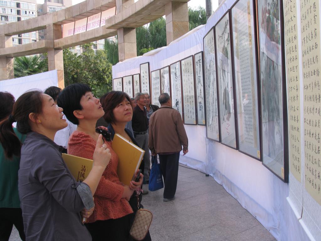 国庆期间,陕西省西安市长安区举办“清风廉韵”廉政书画展,吸引了数万名群众参观。图为展览现场。