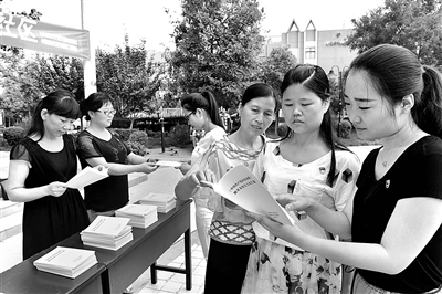 近日,陕西省西安市长安区组织干部深入农村、社区巡回宣讲《中国共产党问责条例》,教育引导党员领导干部认真履职、勇于担当。图为该区干部在韦曲街道广场社区发放相关资料。