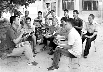 近日,陕西省西安市灞桥区纪委结合“两学一做”学习教育,编印户县农民画图解党规党纪读本,发放给乡村党员、干部,让党规党纪常驻基层党员、干部心间。图为灞桥区洪庆街道栗沟村组织党员集中学习图解党规党纪读本。