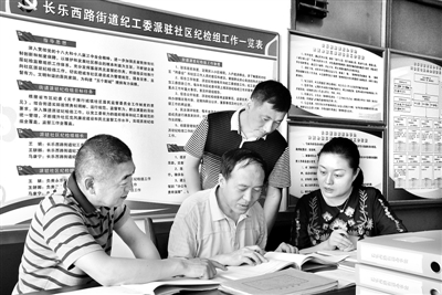 陕西省西安市新城区纪委针对群众身边的“四风”和腐败问题,主动出击,积极作为,对已经了结的信访件开展“回头看”,确保“微腐败”线索不放过、不遗失。今年以来,区纪委发现处置“微腐败”问题线索48件,立案查处30件,党纪政纪处分31人。图为新城区纪委常委带队在长乐西路街道核查违反中央八项规定精神问题线索。