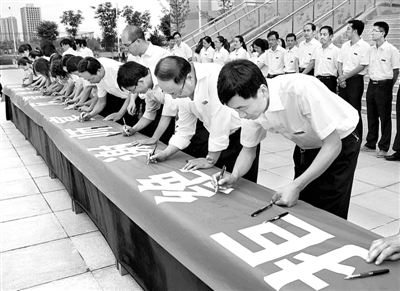 近日,陕西省长武县教育局在全县教育系统开展“崇尚文明风、拒绝谢师宴”公开承诺活动,大力倡导一杯清茶谢师恩、一张合影留纪念、一张卡片送祝福等谢师感恩活动,用更节俭、更健康、更文明的方式表达对教师的尊重和谢意,营造风清气正的校园环境。图为长武县中学毕业班教师现场签名承诺。