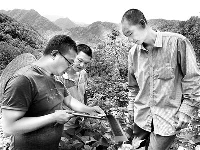 陕西省石泉县纪委监委推行以信访举报便捷化、信访办理规范化为主要内容的纪检监察信访举报工作机制,努力化解信访难题,着力打通基层信访举报渠道。图为近日,该县云雾山镇纪检监察干部在云阳村八组汤家垭核实退耕还林补助款发放情况。