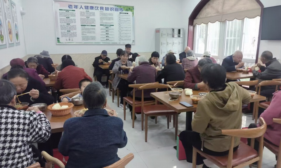 现在,社区老年餐厅成了我们老年人的“快乐驿站”。每天到饭点,大家就不约而同地聚到这里,吃着放心饭,聊着家长里短,说说笑笑特别热闹。