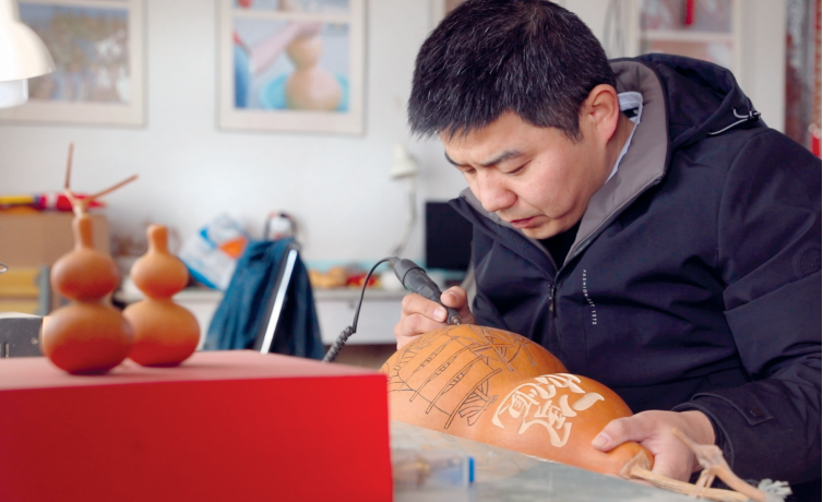 凭着安静沉稳的性子,宋朋杰潜心学习葫芦雕刻技艺。他总能耐心观察纹路走向,一刀一刻间,认真打磨每个细节。渐渐地,他雕刻的葫芦,受到很多人的喜爱。