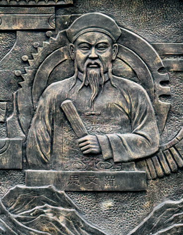 商州区第一初级中学校园内的罗文思浮雕像。 蔡怡 摄
