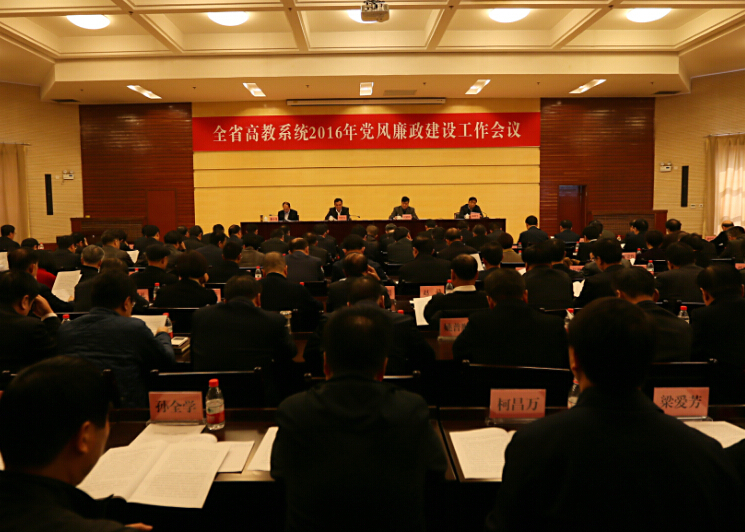 郝利生在工作报告中回顾总结了2015年全省高教系统党风廉政建设和反腐败工作,对2016年重点工作进行了安排部署。他要求,全省高校要全面贯彻党的十八大和十八届三中、四中、五中全会和习近平总书记系列重要讲话精神,保持坚强的政治定力,坚持全面从严治党、依规治党,加强高教系统党的纪律建设,切实增强全面从严治党的内生动力,常态化推进作风建设,深入开展纪律审查工作,强化纪检监察干部队伍建设,不断取得党风廉政建设和反腐败斗争新成效。