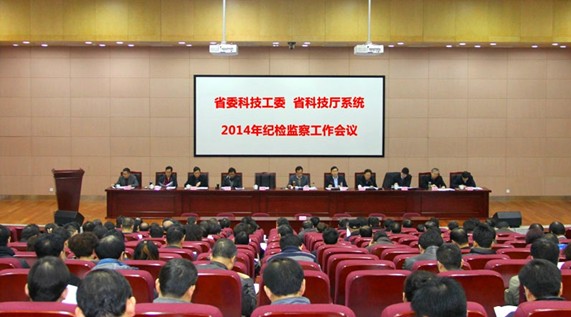 3月6日,省委科技工委、省科技厅在省科技资源统筹中心召开了2014年纪检监察工作会议。省委科技工委书记、省科技厅厅长李明远出席会议并讲话,省委科技工委委员、省科技纪工委书记郑明玺作工作报告,省委科技工委副书记张书玲主持会议,委厅领导,各科研院所党政主要负责人、纪委书记、内设纪检监察机构负责人,各直属事业单位的党政主要负责人,机关副处级以上领导干部,共150余人参加会议。