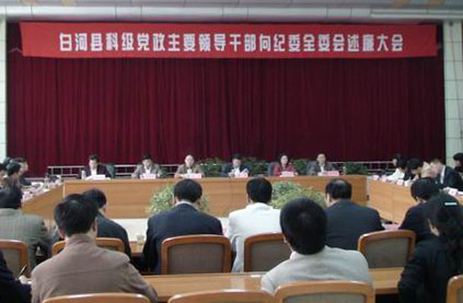 为全面贯彻落实反腐倡廉建设“五项制度”,近日,白河召开科级党政主要领导向县纪委全委会述廉大会。市纪委副书记李均,县委书记陈勇、县政协主席刘惠芳,县人大副主任魏青顺等领导出席会议。会议由县委常委、县纪委书记李德政主持。