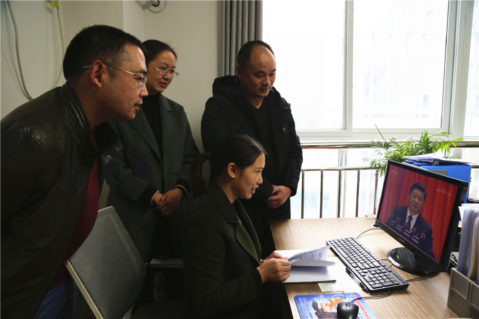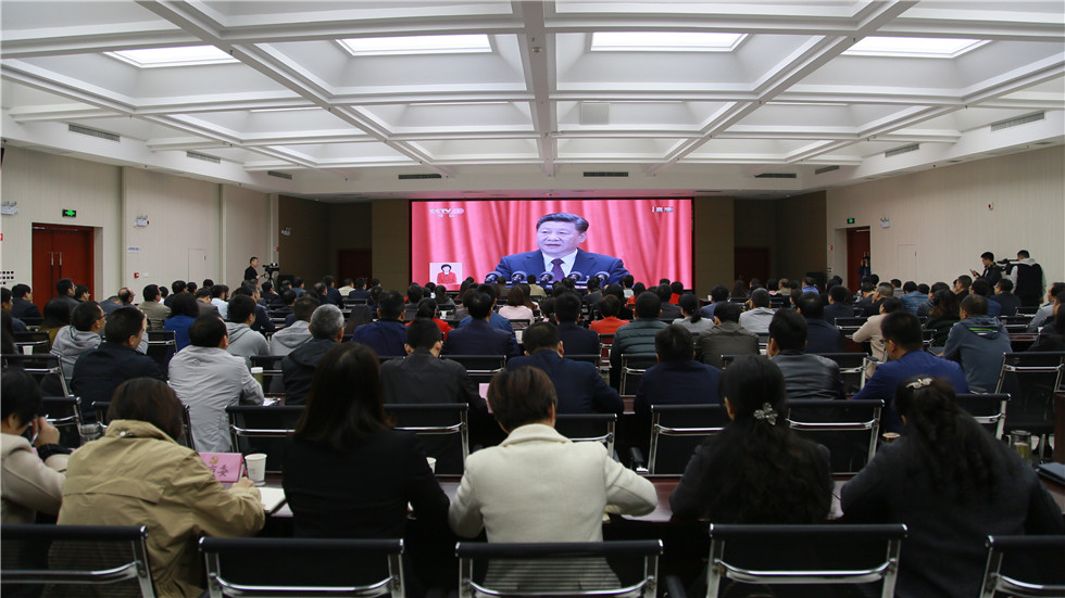 白河县纪委监察局干部认真聆听习近平总书记所作的报告,大家精神振奋,倍受鼓舞。