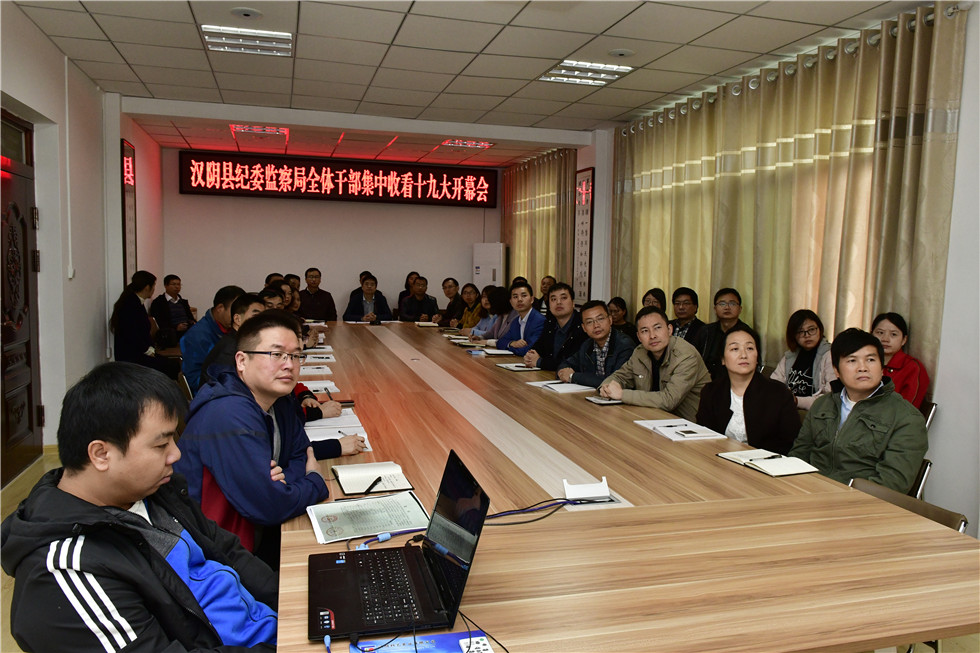 汉滨区纪委监察局组织机关干部集中收看十九大开幕式视频直播。