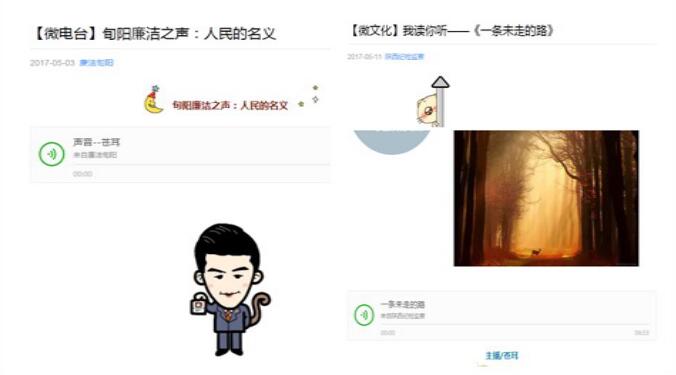 一周一期微电台。通过微信、网站等媒体用声音传播的方式对党纪党规、人生哲理、廉政小故事、“学思践悟”等廉政文化有关内容进行播报,传递“廉”音。