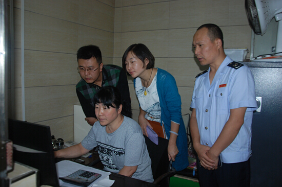 (图为王益区纪委在税务部门倒查发票,电子取证)
