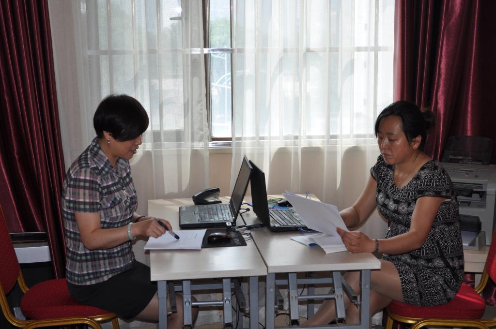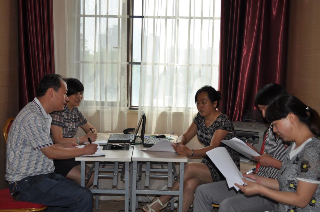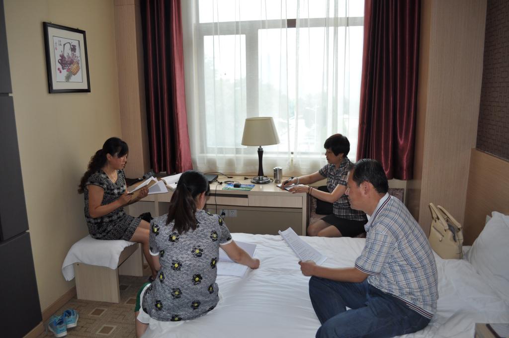 8:30,谈话组工作人员在做谈话准备工作。