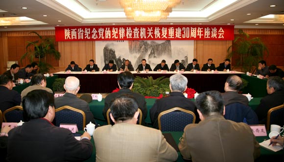 11月25日,陕西省纪念党的纪律检查机关恢复重建30周年座谈会在西安召开。来自我省各级纪律检查战线的负责同志以及长期在纪检战线上工作的退休老领导欢聚一堂,共同回顾我省党风廉政建设和反腐败工作的30年光辉历程、取得的历史成就和宝贵经验,展望下一步反腐倡廉工作。省委常委、省纪委书记郭永平出席座谈会并讲话。