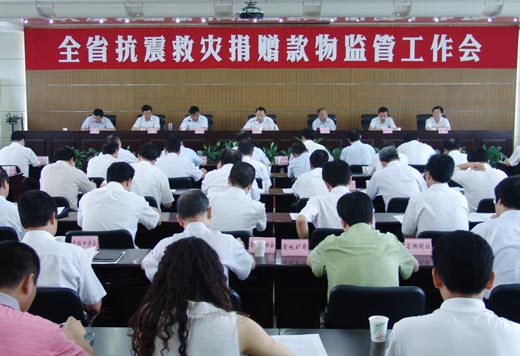 这次会议的主要任务是,安排部署全省抗震救灾捐赠资金物资监督管理工作,提高捐赠资金物资使用效益,促进灾后恢复重建工作顺利进行。会议宣读了《陕西省抗震救灾捐赠款物监督管理办法》并作了说明。