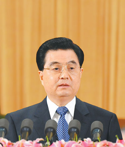 胡锦涛出席并发表重要讲话 吴邦国温家宝贾庆林李长春李克强周永康出席