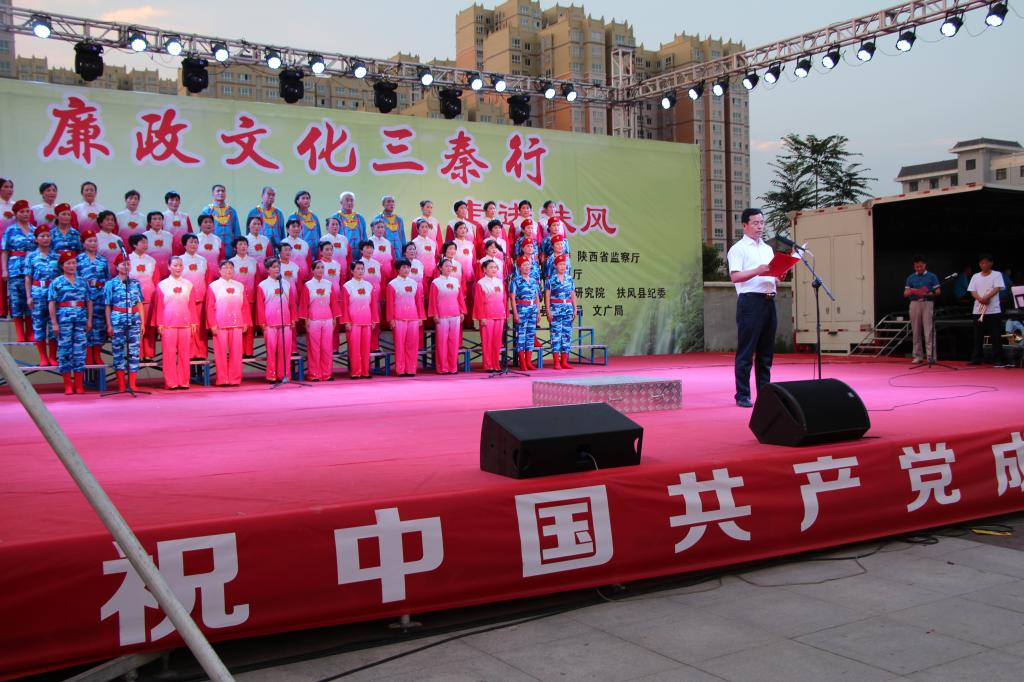 七月骄阳热情似火,佛都圣地喜迎宾朋。7月1日晚,在全国上下喜庆建党93周年之际,由省纪委、省监察厅和省文化厅共同主办的“廉政文化三秦行”巡演走进宝鸡市扶风县,为全县1500余名党员干部和群众送上了一台丰盛的廉政文化大餐。
