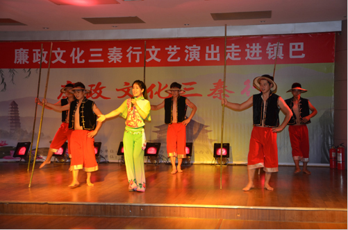 县委常委、纪委书记周庆福在文艺节目演出前做了热情洋溢的致辞。文艺演出在镇巴县文工团表演的《采茶谣》中拉开帷幕,音乐快板《夸夸廉政制度群》脍炙人口,向观众全面介绍了我省十三项廉政制度;歌曲《情系老百姓》、《追寻》、朗诵《永远的焦裕禄》深情款款,热情讴歌了共产党人情系百姓、廉洁奉公、无怨无悔的高尚情怀;小品《信任与责任》贴近生活、贴近群众,以大家喜闻乐见的形式宣传了村民监督委员会制度;张未英老师表演的魔术《五彩缤纷》变幻无穷,精彩纷呈,邀请现场观众参与节目,增强互动性,拉近了与观众的距离;文艺演出在一首《建设和谐大家园》中落下帷幕。整场文艺演出,编排科学,将反腐倡廉各项制度巧妙融入群众喜闻乐见的文艺节目中,给广大党员干部、人民群众送上了一份“文化大餐”。
